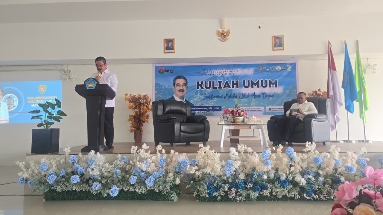 Pada tanggal 15 Desember 2025, menggelar kuliah umum dengan menghadirkan Gubernur Provinsi Maluku Bapak Hendrik Lewerissa, S.H.,L.L. M sebagai narasumber utama yang bertempat di Gedung FEB Auditorium C LT.3 Universitas Pattimura. Adapun topik yang dipaparkan pada kuliah umum tersebut yaitu “Transformasi Maluku Untuk Masa Depan”. dalam kuliah umum ini, turut dihadiri oleh Rektor Universitas Pattimura Bapak Prof. Dr. Fredy Leiwakabessy, M.Pd dan juga Dekan Fakultas Ekonomi dan Bisnis Bapak Prof. Dr. Teddy Ch. Leasiwal, S.E.,M.Si, Dosen, dan Mahasiswa.
